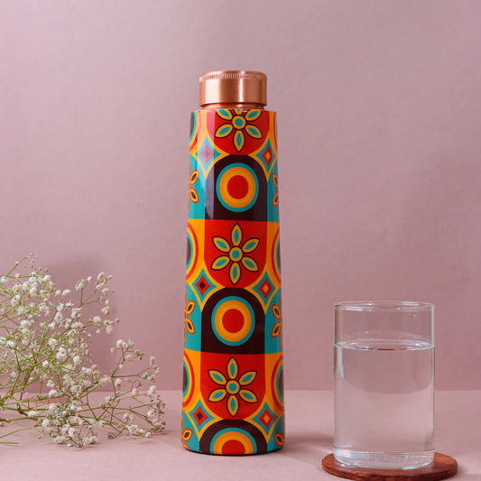 RETRO CIRCLES PRINT PURE COPPER WATER BOTTLE