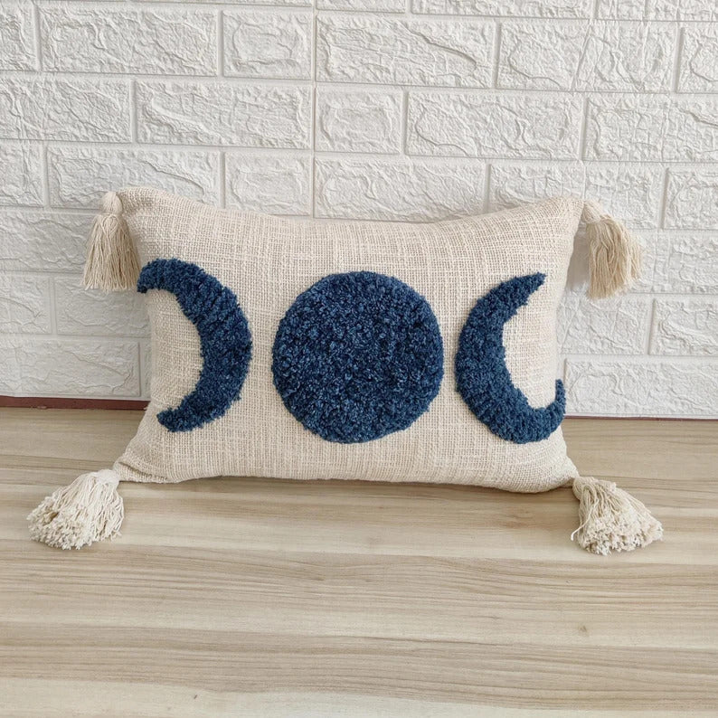 Teal Blue & Ivory Moon Phases Cushion Cover