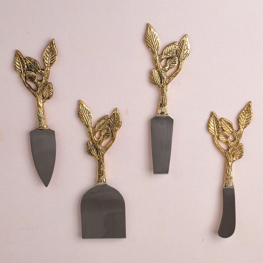Brass 4 - piece Cheese Knife Set | Punkh - Feather Handle