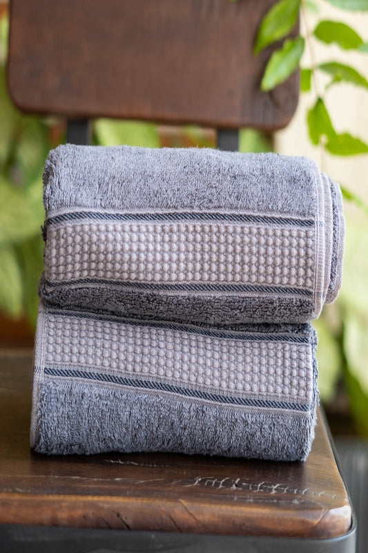The Karira Collection - Bamboo Cotton Bath Towels And Hand Towels Set Of 2 (Grape Grey)