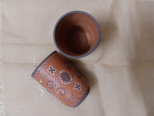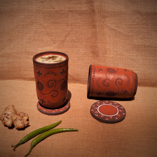Kutch Painted Pottery Tumblers and Coaster (Set of 2 Each)