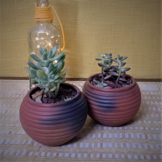Terracotta & Jute Hanging cum Desktop Planters Round (Set of 2)