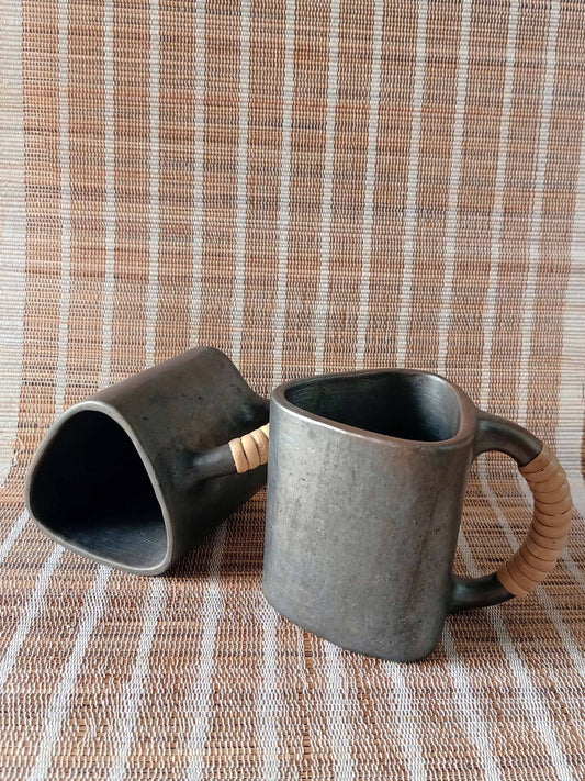 Longpi Black Pottery Trikon Coffee Mug Large (Set of 2)