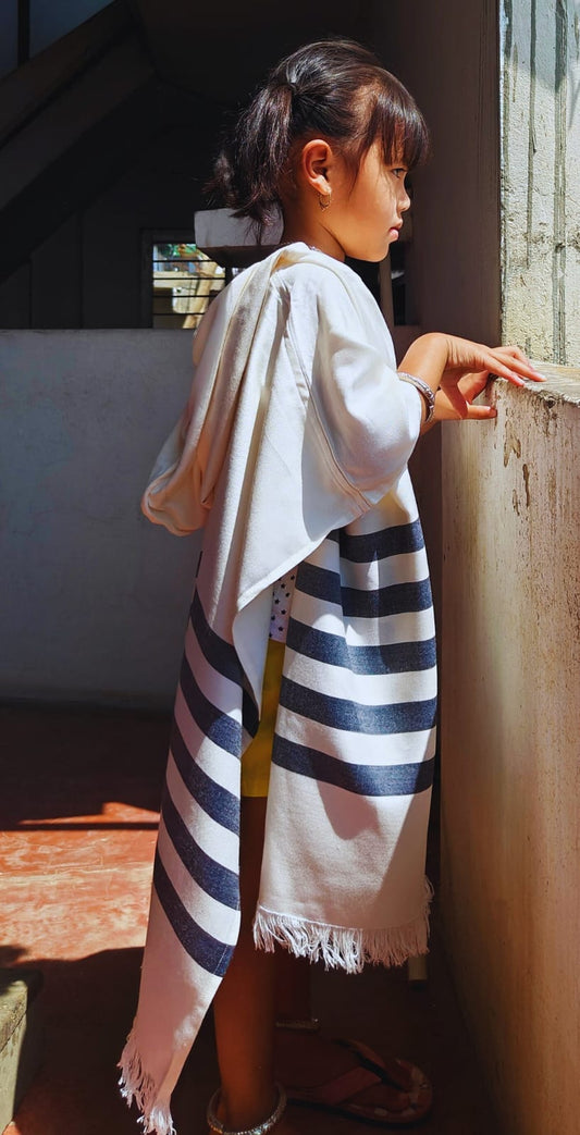 Thin Bamboo Baby Poncho - Indigo Stripper