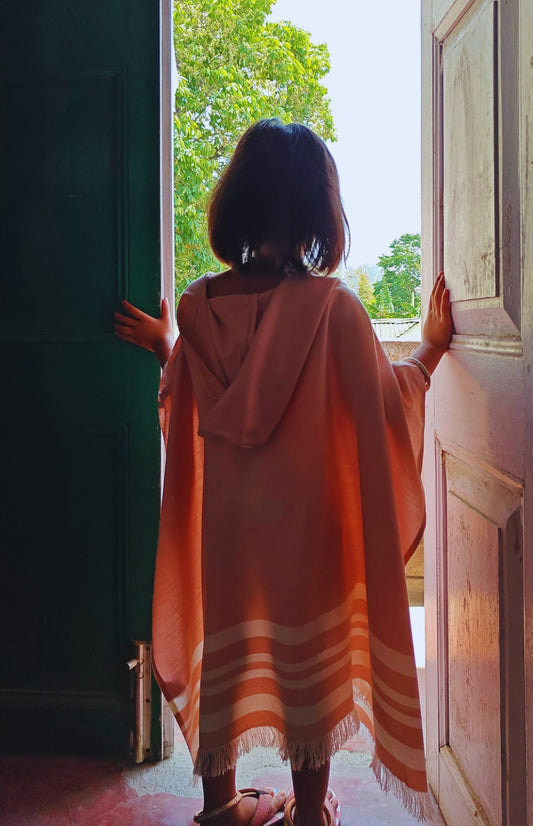 Thin Bamboo Baby Poncho- Peach Melba