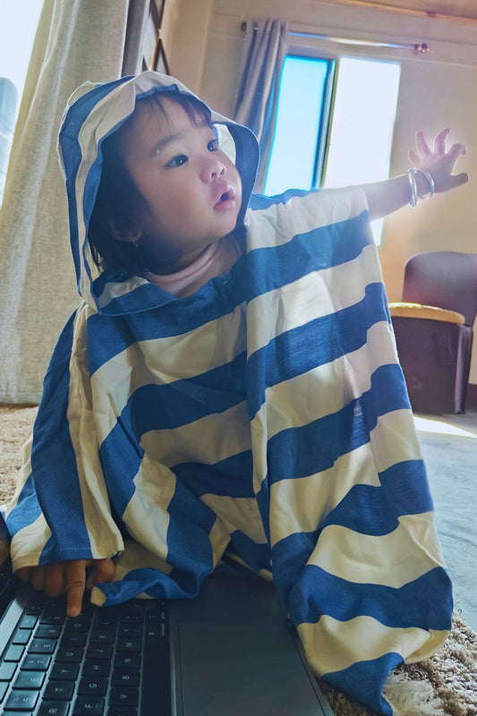 Thin Bamboo Baby Poncho- Vacation Blue