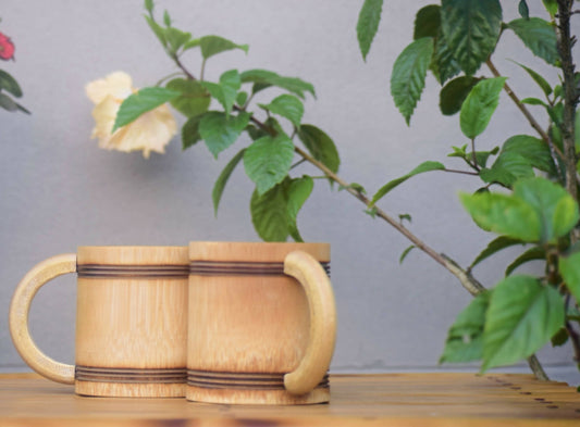 BAMBOO TRAY WITH SET OF 2 COFFEE MUG