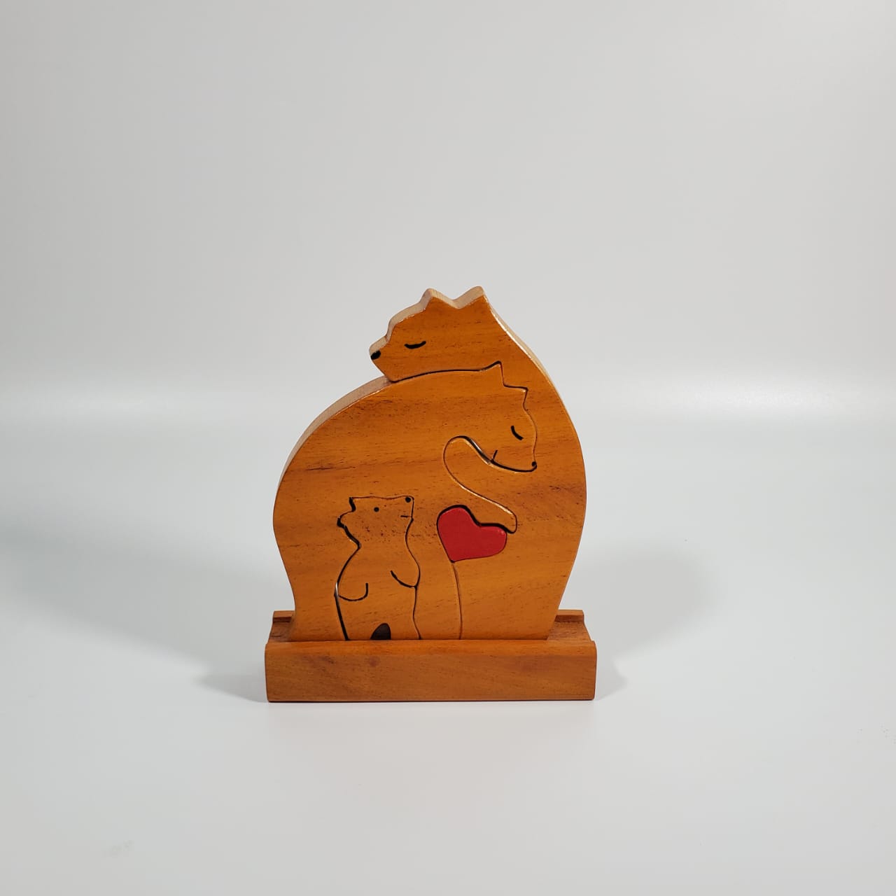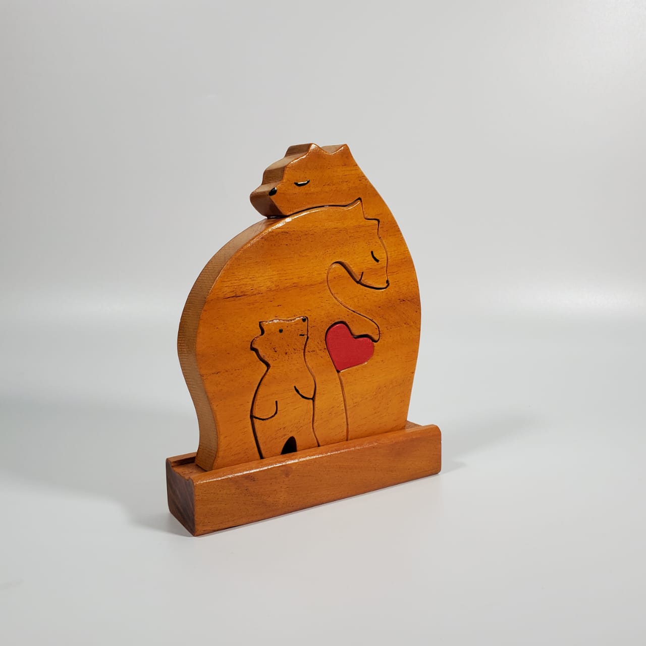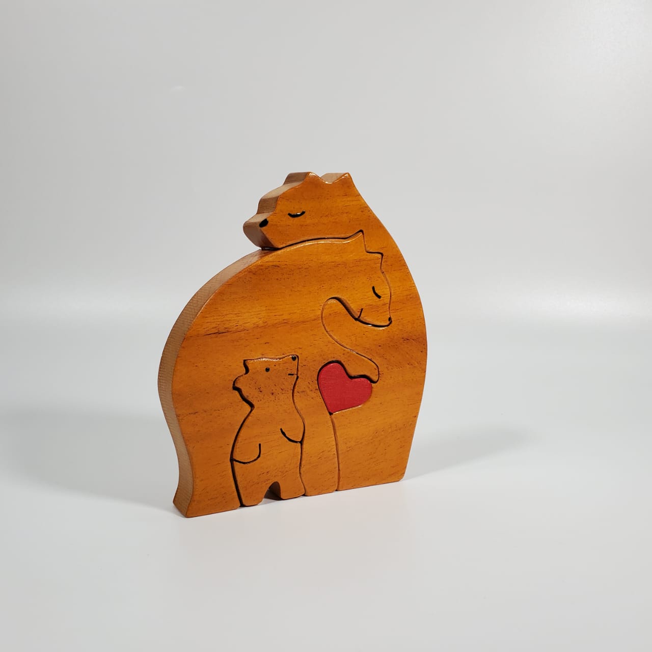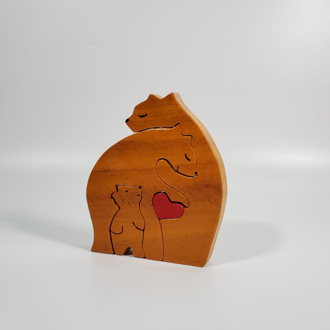 • The natural woodgrain and warm tones enhance the charm of the bear family, making each piece a delightful display of rustic elegance.
