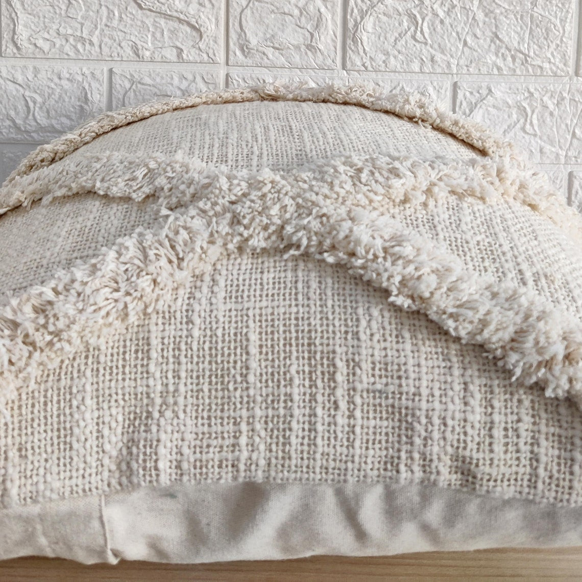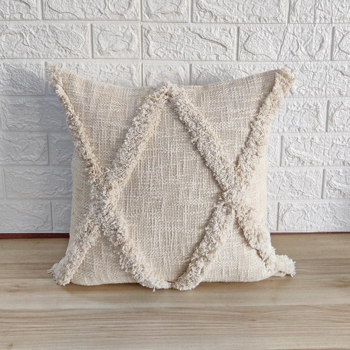 • This hand tufted cushion cover is made out of textured cotton fabric.