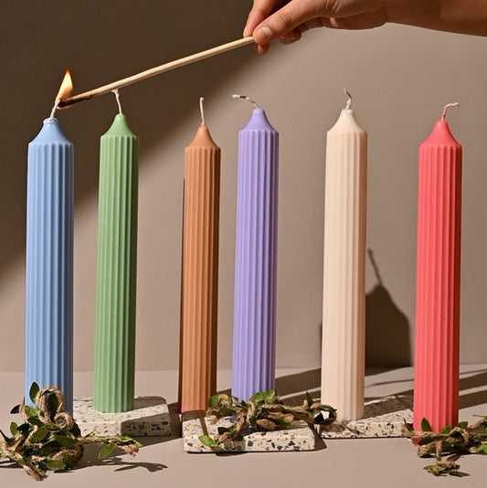 Ribbed Tall Candles | Unscented Soy wax | Available in assorted Colors | Set of 2