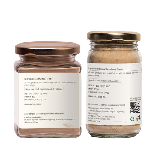 Face Pack Combo - Sandalwood Powder and Multani Mitti | Duo for Skin Brightening and Glow | 100g + 150g