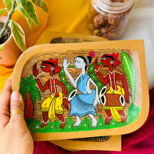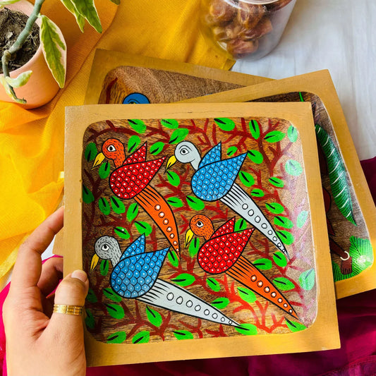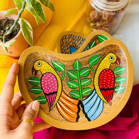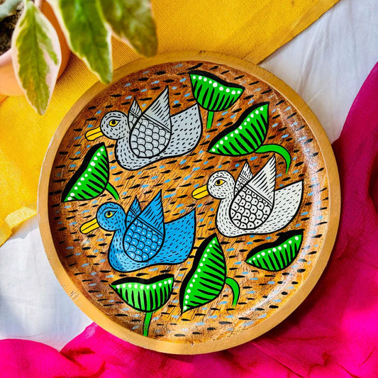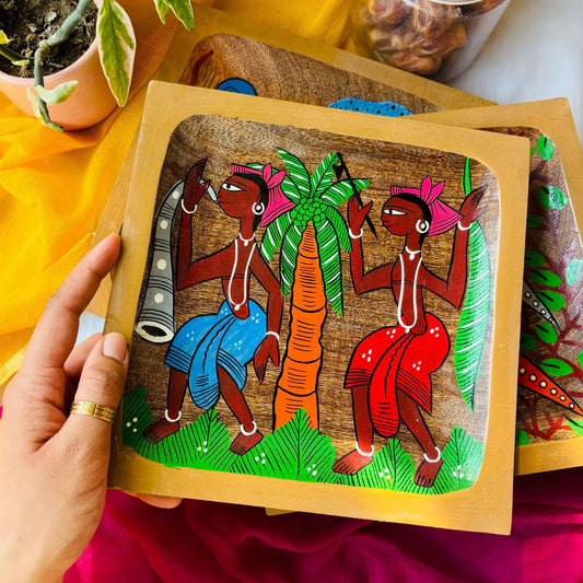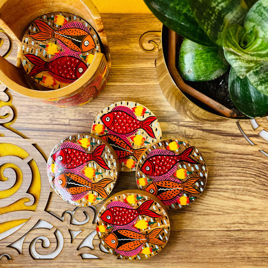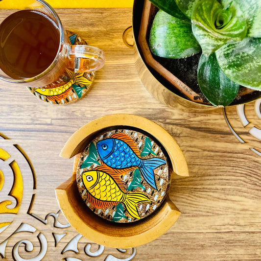 Tarang Round Wooden Coaster with Holder | Set of 6