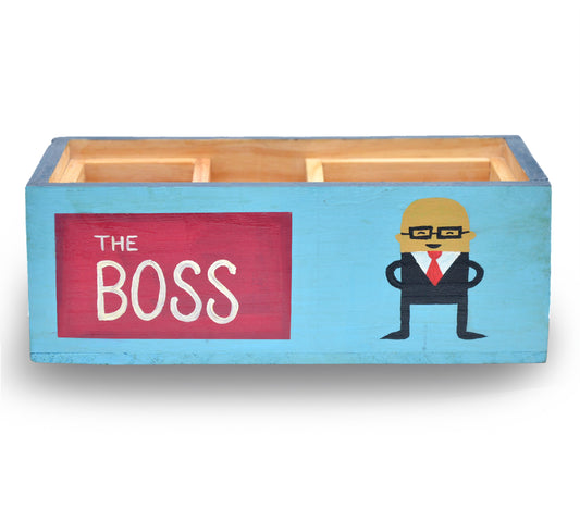"Boss at Work" Hand Painted Wooden Desk Organizer