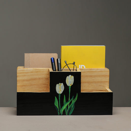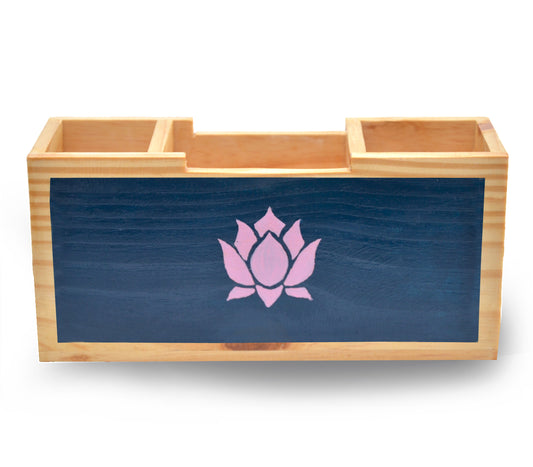 Blooming Lotus Hand Painted Wooden Desk Organizer