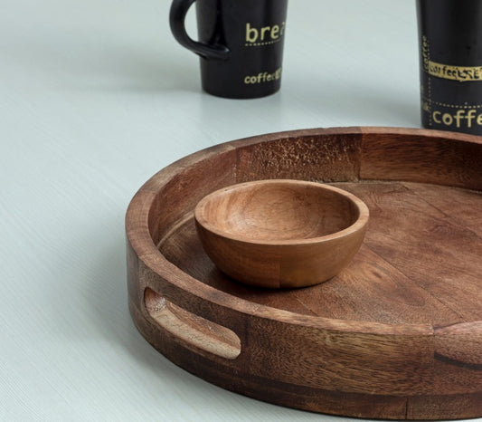 "Shade of Black" Round Wooden Serving Tray in Mango Wood
