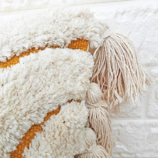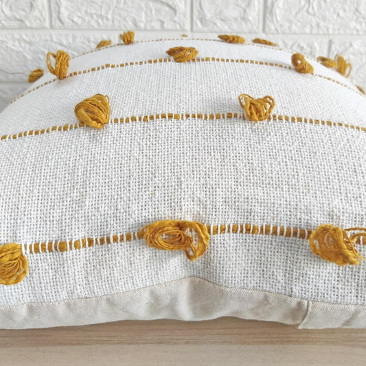 Ivory & Mustard Yellow Tufted Boho Textured Cotton cushion cover