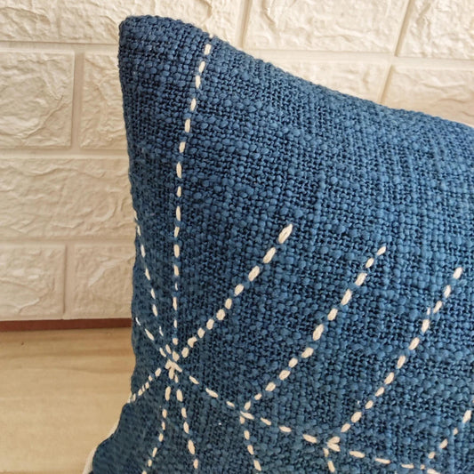 Blue Natural Raw Cotton Hand Dyed Fabric Hand Stitches Hand Kantha Pillow Cover