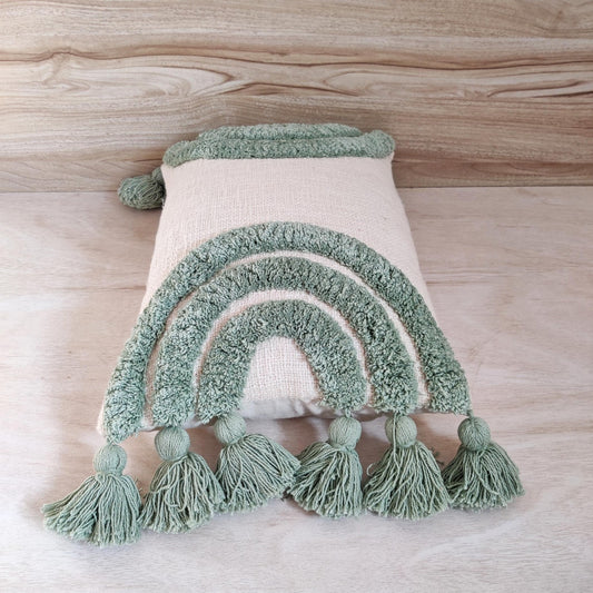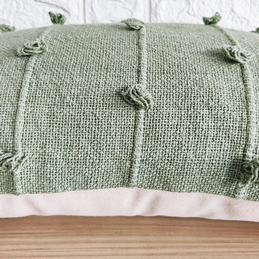 Ivory & Sage Green Tufted Boho Textured Cotton cushion cover