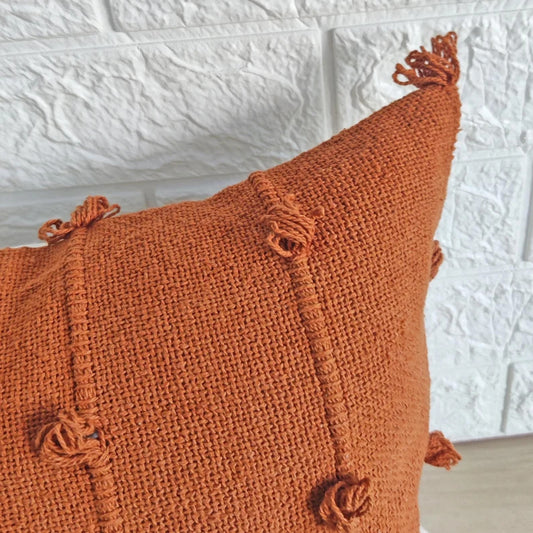 Rust Orange Natural Raw Cotton Hand Loom Woven Textured Fabric Cushion Covers