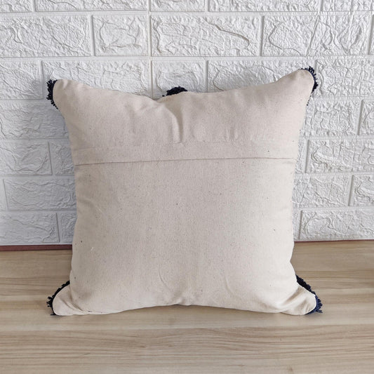 Navy Blue & Ivory Handtufted Cotton Cushion Cover