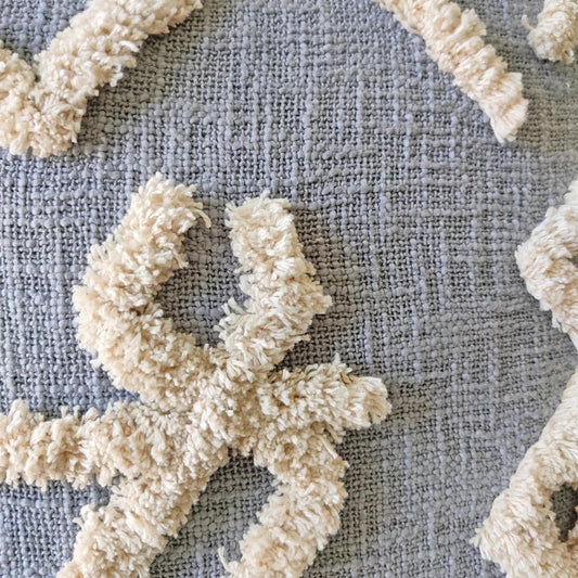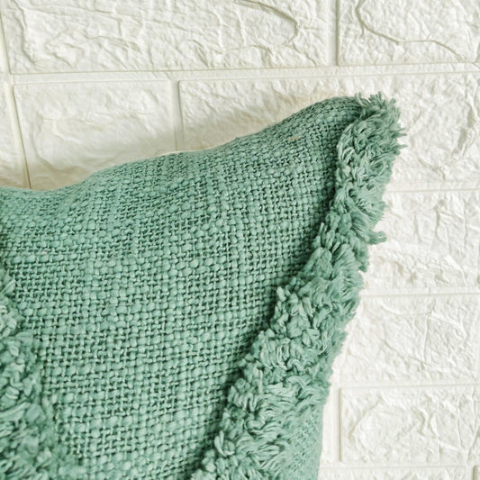Teal Blue Boho Tufted Cotton Cushion Cover