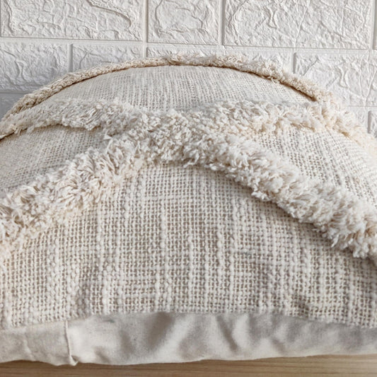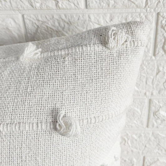 Beach White Natural Raw Cotton Hand Loom Woven Textured Fabric Cushion Cover