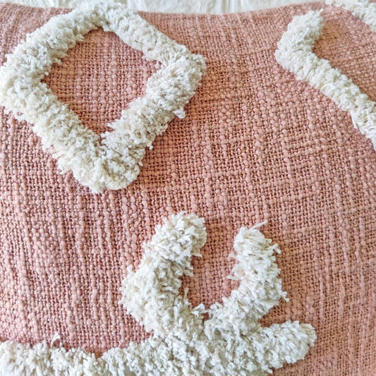 Blushed Pink Boho Tufted Cotton Cushion Cover