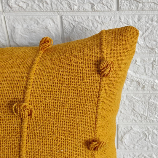 Mustard Yellow Natural Raw Cotton Hand Loom Woven Textured Fabric Cushion Cover